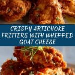 Crispy and flavorful artichoke fritters perfect as an appetizer or snack, served with a smooth and tangy whipped goat cheese dip. These golden fritters combine tender artichokes with Parmesan and fresh parsley, fried to perfection for a delightful bite.