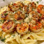 This Baked Shrimp Scampi recipe features large shrimp baked in a flavorful mixture of butter, olive oil, garlic, white wine, and lemon juice, topped with a crispy Parmesan and panko breadcrumb crust. It’s a delicious and easy-to-make seafood dish perfect for a quick weeknight dinner or a special occasion.