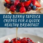 Delight in these light and naturally sweet Berry-Topped Tapioca Crepes, made with tapioca and all-purpose flours, eggs, and almond milk. Perfectly thin and tender, these crepes are topped with fresh mixed berries and optional creamy yogurt, finished with a drizzle of honey or maple syrup for a wholesome breakfast or dessert.