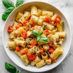 This Bruschetta Chicken Pasta recipe combines the fresh, vibrant flavors of classic bruschetta with tender, seasoned chicken and perfectly cooked pasta. Featuring ripe tomatoes, garlic, basil, and a balsamic tang, this dish is a delightful fusion of Italian-inspired tastes in a simple, easy-to-make meal that’s perfect for weeknight dinners or casual entertaining.