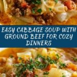 A hearty and comforting Cabbage Soup featuring ground beef, aromatic onions, garlic, and fresh vegetables simmered in savory beef broth. This easy-to-make, nutritious soup is perfect for a warming meal that serves six.