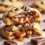 Delight in these chewy Caramel Chocolate Chip Cookies, featuring a perfect blend of sweet caramel bits and rich chocolate chips nestled in a buttery cookie base. Perfectly baked to achieve golden edges with soft centers, these cookies are an irresistible treat for any occasion.