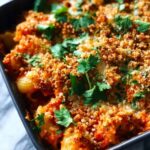 - Bake: Cover the baking dish with aluminum foil and place it in the preheated oven. Bake for 35 minutes. Then, remove the foil and bake uncovered for an additional 5 to 10 minutes, until the breadcrumb topping turns golden brown and crispy.