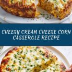 A rich and comforting Cheesy Cream Cheese Corn Casserole combining whole kernel and cream-style corn with sour cream, cream cheese, cheddar cheese, and corn muffin mix. Baked to a golden perfection, this casserole is creamy, cheesy, and an ideal side dish for any meal or potluck.