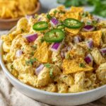 A creamy and spicy pasta salad combining tender rotini with a cheesy jalapeño dressing, topped with crispy fried onions for a delightful crunch. Perfect as a side dish or a flavorful potluck contribution, this easy-to-make salad brings a tasty kick and creamy texture that everyone will love.