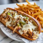 These Chicken Cheese Steak Sandwiches offer a delicious and quick twist on the classic Philly-style sandwich, featuring tender sliced chicken breasts sautéed with caramelized onions and bell peppers, seasoned with garlic powder and paprika, then topped with melted provolone cheese and served in toasted hoagie rolls. Perfect for a satisfying main course that’s ready in under 30 minutes.