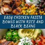 These Chicken Fajita Bowls offer a vibrant and healthy meal featuring marinated and skillet-cooked chicken, sautéed peppers and onions, fresh tomato-corn salsa, and seasoned black beans served over rice. Ready in just 35 minutes, they bring bold Mexican-inspired flavors to your table with a perfect balance of protein, vegetables, and grains.