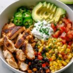 These Chicken Fajita Bowls offer a vibrant and healthy meal featuring marinated and skillet-cooked chicken, sautéed peppers and onions, fresh tomato-corn salsa, and seasoned black beans served over rice. Ready in just 35 minutes, they bring bold Mexican-inspired flavors to your table with a perfect balance of protein, vegetables, and grains.