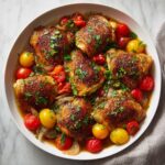 Chicken Scarpariello is a hearty and flavorful Italian-American dish featuring tender bone-in chicken thighs and spicy Italian sausage simmered with pickled cherry peppers, garlic, red bell peppers, and a tangy white wine sauce. This one-pan stovetop meal combines savory, spicy, and tangy flavors, making it an ideal satisfying weeknight dinner for four.