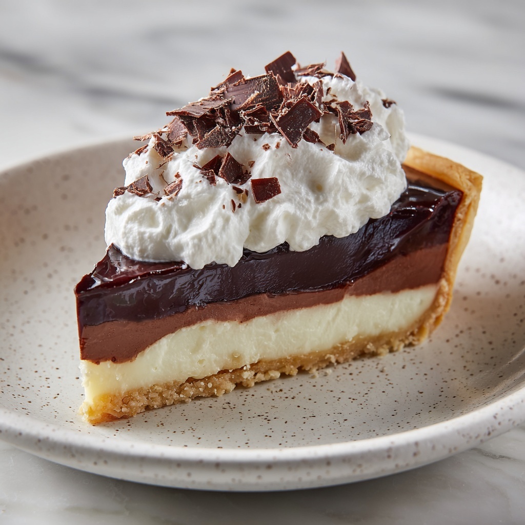 Before serving, whip the remaining ½ cup of heavy cream to soft peaks and either pipe or spoon it over the pie for a lovely finishing touch. This extra cream adds both presentation and a complementary flavor to the rich chocolate. Garnish with choices like shaved chocolate, chocolate curls, or fresh berries to elevate the experience even further.