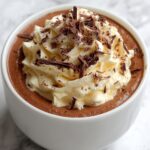9. Serve and garnish: Just before serving, garnish each mousse with a dollop of whipped cream and sprinkle with dark chocolate shavings or curls for an elegant finish.