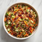 This Christmas Quinoa Salad with Cranberries is a vibrant and festive dish featuring a medley of fresh vegetables, tart cranberries, and fluffy quinoa tossed in a zesty lemon-olive oil dressing. Perfect as a healthy holiday side or a refreshing year-round salad, it combines nutritious ingredients and bright flavors to celebrate the season in a wholesome way.