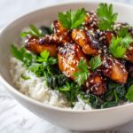 Sprinkle toasted sesame seeds over the dish for a delightful crunch and nutty touch. Then add a generous handful of fresh chopped parsley to introduce a lively herbal note and gorgeous color contrast. These simple garnishes elevate the dish in both flavor and appearance, making it feel special enough for any occasion.