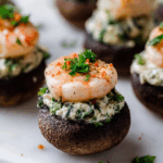 Delicious and creamy shrimp stuffed mushrooms, featuring a savory blend of chopped shrimp, cream cheese, Parmesan, and fresh herbs, baked to golden perfection. This appetizer is perfect for gatherings or a flavorful snack.