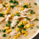This Creamy White Chicken Chili with Corn is a rich and comforting dish that perfectly balances tender shredded chicken, white beans, sweet corn, and a blend of spices in a creamy broth. Simmered with cream cheese and Monterey Jack cheese, this chili offers a velvety texture and flavorful warmth, making it ideal for a hearty lunch or dinner. Garnished with fresh cilantro or green onions and served with crunchy tortilla chips, it’s a delightful twist on classic chili recipes.