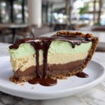 Top the pie with generous drizzles of chocolate syrup. This chocolate addition creates a beautiful visual appeal and pairs wonderfully with the mint, enhancing the overall flavor experience.