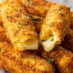 Create three shallow bowls to streamline your coating process: one with flour, another with beaten eggs, and a third with a fragrant mixture of panko breadcrumbs, grated Parmesan, garlic powder, onion powder, paprika, salt, and pepper. This assembly line makes it easy to get an even, crispy coating on every stick.