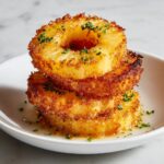 Crispy and sweet fried pineapple rings make for an irresistible snack or dessert. Coated in a spiced batter and fried to golden perfection, these pineapple rings offer a deliciously crunchy exterior with juicy, tropical sweetness inside. Perfect for serving warm with a dusting of powdered sugar and a drizzle of honey or maple syrup for an extra touch of indulgence.