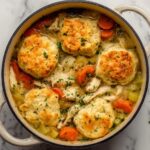 This dish freezes well if you want to save some for later. Consider freezing the chicken and vegetables separately from the biscuit dough dumplings to maintain texture. Freeze portions in airtight containers or freezer bags for up to 2 months for a ready-made comfort meal anytime.