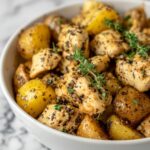 This comforting Crockpot Ranch Chicken and Potatoes recipe combines tender baby potatoes, flavorful smoked sausage, and a creamy ranch sauce, all cooked slowly to perfection in a crockpot. Topped with melted cheddar cheese, this hearty dish is easy to prepare and perfect for a satisfying family meal.