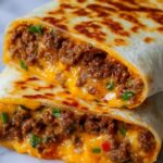 This Crunchy Cheeseburger Wrap combines all the delicious flavors of a classic cheeseburger wrapped in a crispy, golden tortilla. Ground beef cooked with ketchup, mustard, Worcestershire sauce, and spices is mixed with cheddar cheese and pickles, then wrapped and pan-toasted for a satisfying and quick main course perfect for a family dinner.