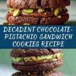 Delight in these Decadent Chocolate-Pistachio Sandwich Cookies, perfect for anyone craving a rich, nutty treat. Featuring a moist cocoa cookie studded with crunchy pistachios, these sandwich cookies are filled with a luscious white chocolate and pistachio cream. Ideal for dessert or a sophisticated snack, these cookies balance deep chocolate flavor with the subtle nuttiness of pistachios.