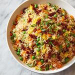 Sprinkle chopped green onions or fresh cilantro on top to add a fresh, herbal brightness that complements the fried rice’s deep flavors. A few sesame seeds also add a pleasant nutty crunch if you want an extra layer of texture.