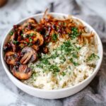 Finish your French Onion Butter Rice Recipe by sprinkling chopped fresh parsley on top. This bright detail not only makes the dish visually appealing but also adds a fresh herbal contrast that complements the richness.