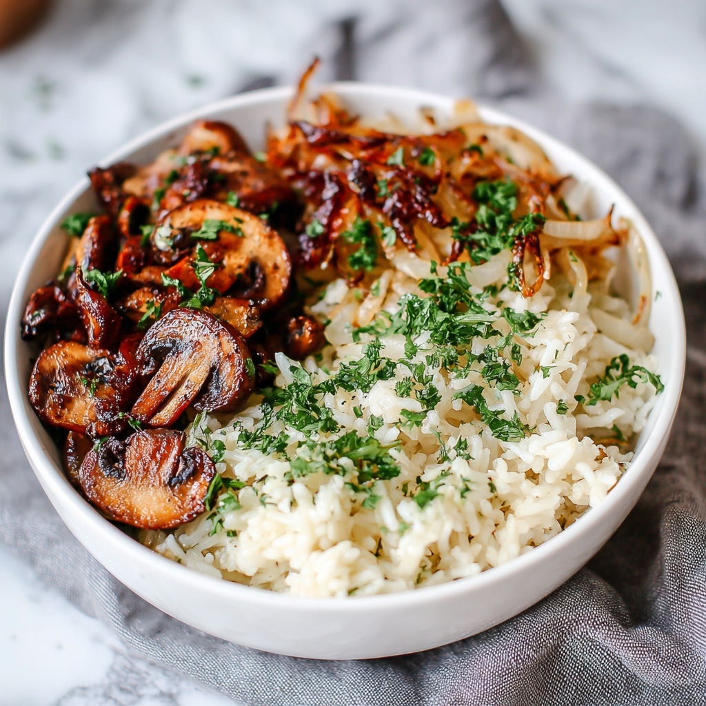 French Onion Butter Rice is a savory and comforting side dish combining caramelized onions, garlic, and fragrant herbs with tender long-grain white rice cooked in flavorful broth. This easy stovetop recipe is perfect for elevating weeknight meals with its rich butteriness and subtle sweetness from the slow-cooked onions.