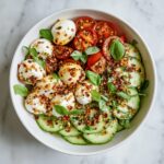 Fresh Cucumber Caprese Salad is a cool and refreshing Mediterranean-inspired dish featuring crisp cucumbers, juicy cherry tomatoes, creamy mozzarella, and fragrant basil, all brought together with high-quality olive oil and a sweet balsamic glaze. Perfect for a light appetizer or side, this easy no-cook salad offers vibrant flavors and a satisfying texture in just 35 minutes.