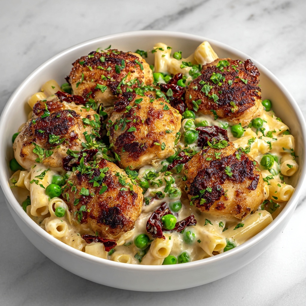 Stir in the sweet frozen peas and cook for a couple more minutes until tender. Slice your cooked chicken and gently mix it back into the skillet along with optional sun-dried tomatoes and a splash of lemon juice. This final touch bursts with flavor, adding layers of freshness and acidity that brighten the dish right before serving.