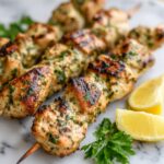 These Garlic Parmesan Chicken Skewers are a flavorful and easy-to-make grilled chicken dish that combines tender, marinated chicken breast chunks with a savory garlic, Parmesan, and herb coating. Perfect for a quick weeknight dinner or a weekend barbecue, they offer a deliciously charred exterior and juicy interior, served best with your favorite sides such as rice, salad, or pasta.