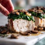 This Goat Cheese & Spinach Stuffed Chicken Breast recipe combines tender chicken breasts with a flavorful filling of sautéed spinach and creamy goat cheese, complemented by sweet caramelized onions and earthy mushrooms. Baked to juicy perfection, this dish makes for an elegant yet easy weeknight dinner.