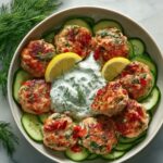 These Greek Chicken Meatballs with Homemade Tzatziki Sauce offer a flavorful and healthy Mediterranean-inspired meal. Tender ground chicken meatballs seasoned with aromatic herbs and spices are baked to perfection and paired with a creamy, refreshing tzatziki sauce made from Greek yogurt, cucumber, and fresh dill. Perfect as an appetizer, main course, or party finger food, this recipe is quick to prepare and delightful to enjoy.