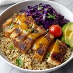 This Grilled Chicken and Quinoa Salad Bowl is a nutritious and delicious meal combining perfectly grilled chicken breasts with fluffy quinoa and fresh vegetables. Tossed in a zesty lemon-Dijon vinaigrette and garnished with crumbled feta and fresh parsley, it’s a wholesome and satisfying dish that’s perfect for lunch or dinner.