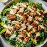 A fresh and flavorful Grilled Chicken Caesar Salad featuring tender, perfectly grilled chicken breasts, crisp romaine lettuce, homemade garlic croutons baked to golden perfection, and a tangy Parmesan lemon dressing. This salad is a wholesome meal that balances protein, crunch, and zest in every bite.
