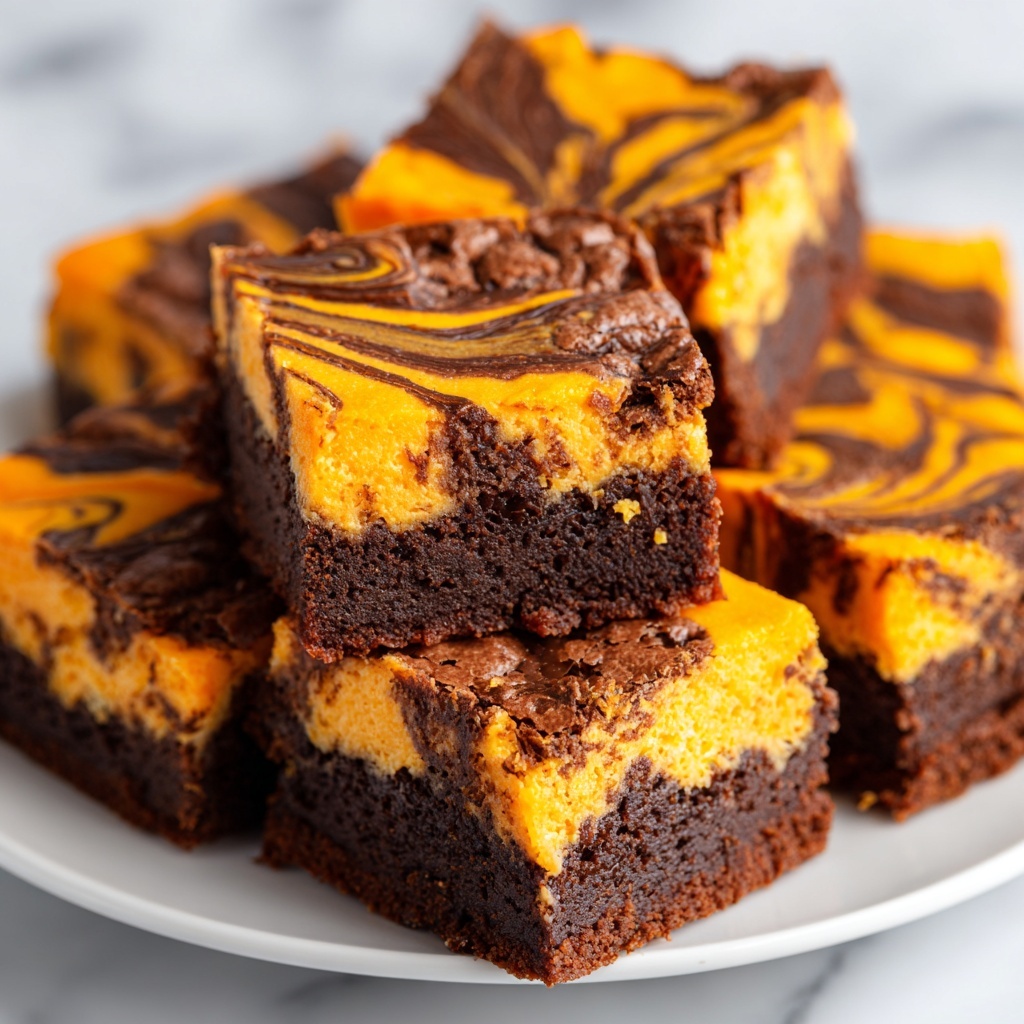 Pour half of the brownie batter into the prepared pan, smoothing it out evenly. Then spoon dollops of the orange cream cheese mixture on top. Use a knife or skewer to gently swirl the cream cheese into the brownie batter, creating those stunning marbled patterns. Carefully pour the remaining brownie batter over the top and repeat the swirling process to finish off the look.