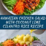 This Hawaiian Chicken Salad with Coconut Lime Cilantro Rice is a tropical-inspired dish featuring marinated and seared chicken breast paired with coconut-infused rice, fresh vegetables, and a tangy lime-cilantro dressing. The salad combines sweet caramelized pineapple and corn with crisp lettuce, avocado, and vibrant herbs, providing a refreshing and flavorful meal perfect for a quick, healthy lunch or light dinner.