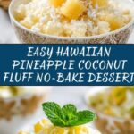 A light and creamy Hawaiian Pineapple Coconut Fluff that combines crushed pineapple, instant vanilla pudding, shredded coconut, mini marshmallows, and whipped topping for a tropical no-bake dessert perfect for potlucks, holidays, and summer gatherings.