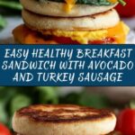 Cut your healthy breakfast masterpiece in half to make it easier to enjoy. Serve your Healthy Breakfast Sandwich: An Incredible Ultimate Recipe warm to fully appreciate the melty cheese, tender egg, and flavorful sausage melding with fresh vegetables and avocado.