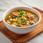 This hearty Beef and Barley Soup combines tender stew beef, nutritious pearl barley, and a medley of vegetables simmered to perfection in a rich beef broth. It’s a comforting, filling meal perfect for chilly days, packed with flavor and wholesome ingredients.
