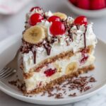 - Garnish and serve: Just before serving, garnish with whipped cream, additional banana slices, maraschino cherries, and chocolate pieces for an attractive presentation and extra flavor layers.