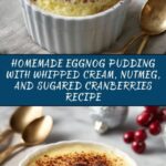 How to Make Homemade Eggnog Pudding with Whipped Cream, Nutmeg, and Sugared Cranberries Recipe