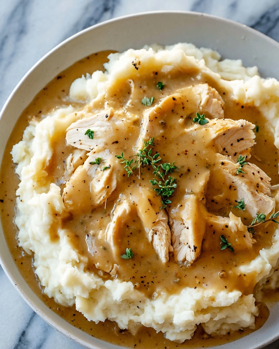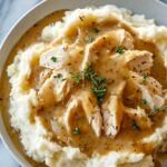 For a fun twist, slice the chicken breasts and arrange them over a bed of garlic mashed cauliflower or polenta, then drizzle the gravy over the top for an elegant presentation. You can even serve this dish family-style straight from the skillet on a rustic wooden board, encouraging everyone to dig in and savor the cozy meal together.