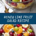 3. Toss the salad: Pour the honey-lime dressing over the mixed fruit and gently toss everything together to evenly coat all the fruit pieces with the dressing.
