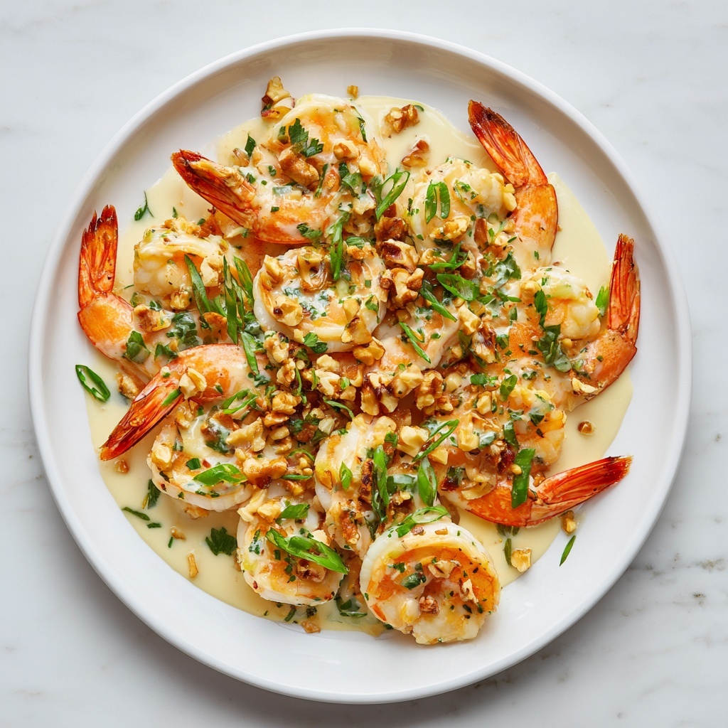 - Toss and serve: In a large bowl, combine the fried shrimp, candied walnuts, and prepared sauce. Toss gently until everything is evenly coated. Garnish with chopped green onions if desired. Serve immediately for best texture and flavor.