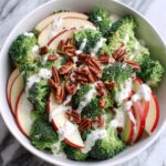 This Honeycrisp Apple Broccoli Salad is a refreshing and crunchy side dish combining crisp Honeycrisp apples, fresh broccoli florets, dried cranberries, and sliced almonds, all tossed in a creamy honey apple cider vinegar dressing and topped with sharp cheddar cheese. Perfectly chilled to meld the flavors, it’s a delightful salad ideal for a light lunch or a vibrant accompaniment to any meal.