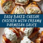 This Juicy Baked Caesar Chicken with Parmesan Sauce features tender chicken breasts baked to perfection and topped with a creamy, flavorful sauce made from Caesar dressing, sour cream, and Parmesan cheese. Easy to prepare and ideal for a satisfying dinner that pairs well with a variety of sides.