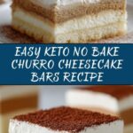 Enjoy a guilt-free dessert with these Keto No-Bake Churro Cheesecake Bars, featuring a crunchy almond flour crust with shredded coconut and a creamy cinnamon-spiced cheesecake filling. These bars are easy to prepare, require no baking, and are perfect for a low-carb, keto-friendly treat that satisfies your sweet tooth without the sugar overload.