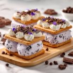 - Assemble the Sandwiches: Once cookies and ice cream are ready, soften ice cream slightly for easier scooping. Place a scoop of lavender vanilla ice cream on the flat side of one cookie, then top with another cookie. Gently press together to form a sandwich.